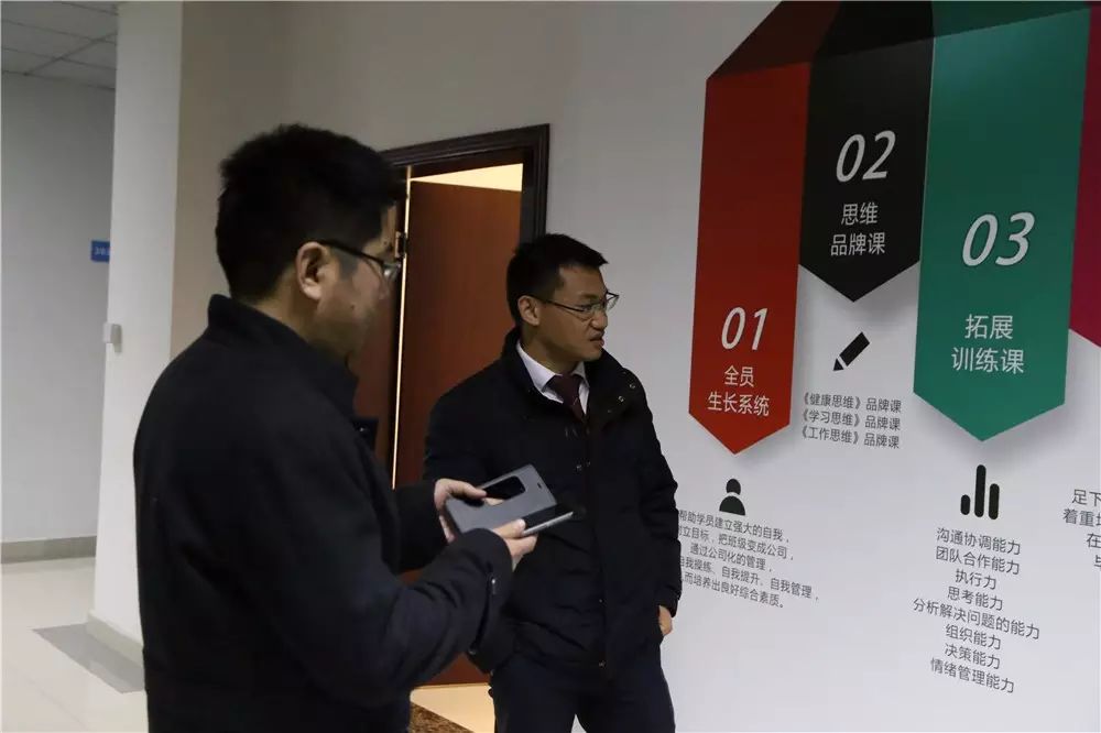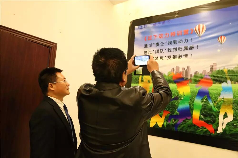 走到114多功能厅,呙坤宏先生还为张燕州等领导简要讲解了足下软件学院的素质拓展训练课程!张燕州先生听完后表示非常赞赏,并照相准备回校宣传!