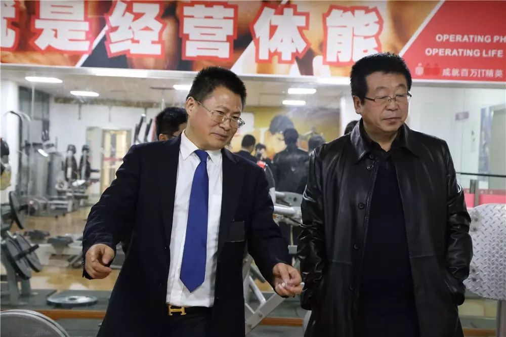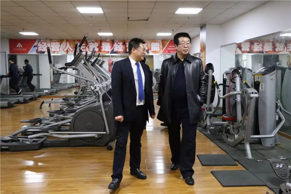 呙坤宏先生带张燕州等领导参观足下软件学院健身房、形体室, 由于是周五的晚上,很多同学都回家了,或者在机房上机!健身房健身的人不多。