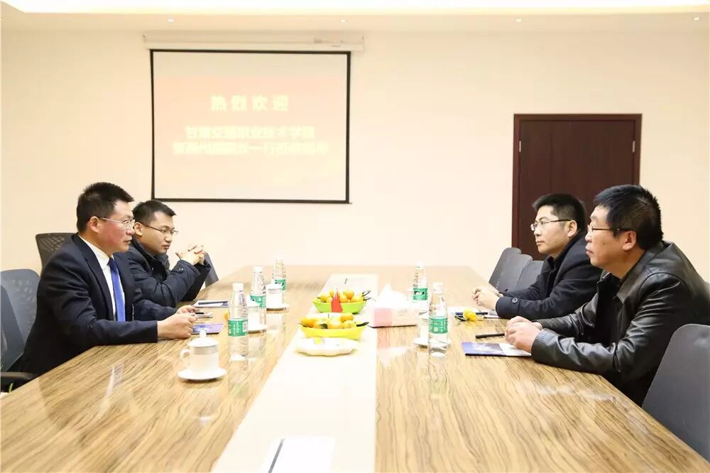 2015年12月18日晚上,足下科教集团迎来了甘肃交通职业技术学院副院长张燕州等一行领导莅临指导,足下科教集团董事长呙坤宏先生、足下软件学院教学总监卢卫中先生全程陪同。副院长张燕州一行首先来到德克特了解足下科教集团的发展历史!
