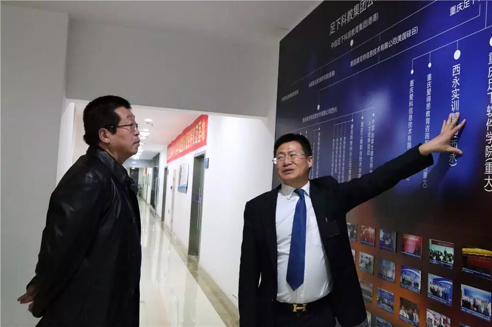 呙坤宏还为张燕州一行讲解了历届优秀毕业就业明星和在校优秀学生展示墙,领导们充分肯定了足下的教育文化和充分肯定足下对重庆教育事业做出的贡献!
