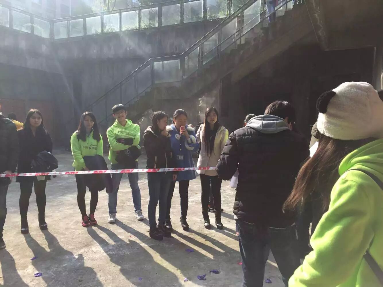 这个活动也有很多看点,最普通的就是一人出错,一队倒地了;当然,最有意思的就是,一人出错,一队人把他拖着走了。