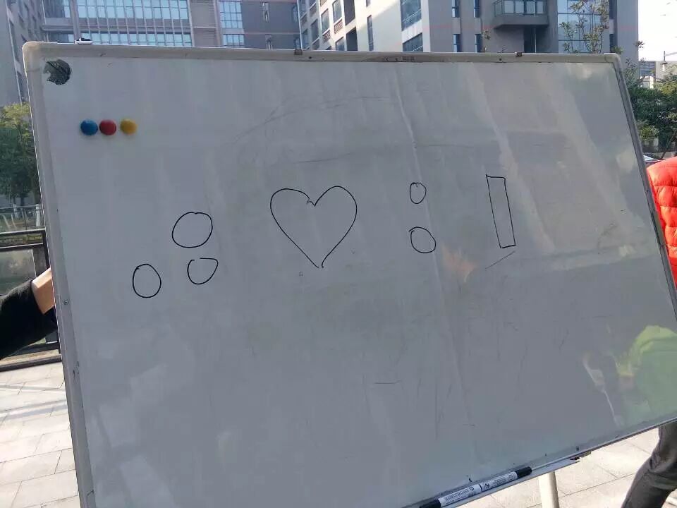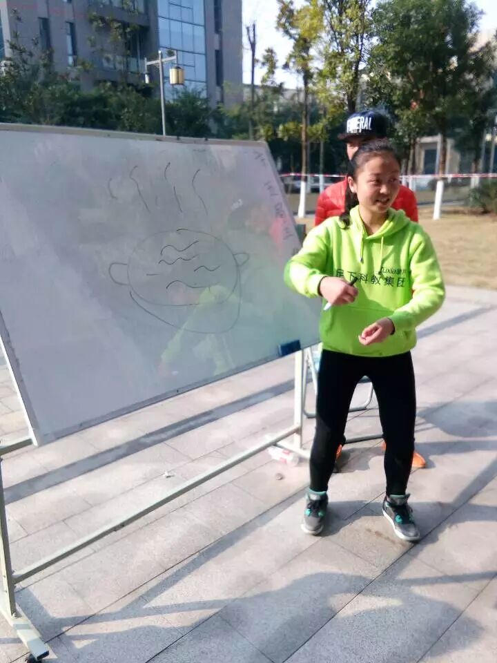 同学们还玩了“你画我猜”上面有人画画,下面的按着表演者的动作,猜测画的什么,表演者不能发出声音!