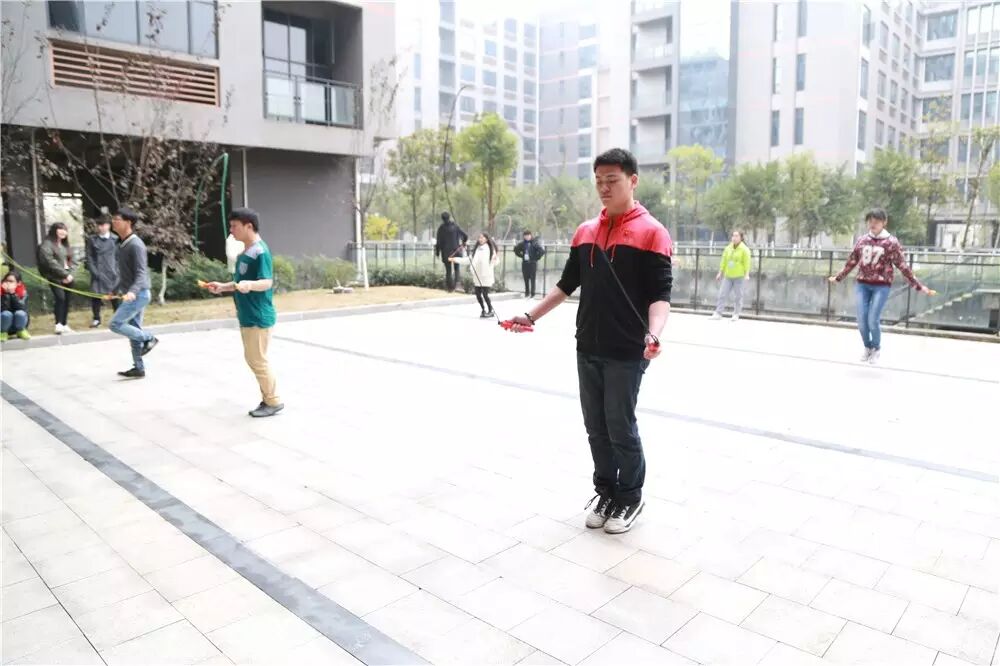 随后是单人跳绳,每个参赛成员都尽全力跳动,累并快乐着。