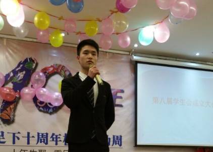 教职部经理江砚雪致辞:在对新一届学生会的成立表示祝贺的同时,也表达了他对学生会的美好希冀!在规范和系统这个团体的同时,激发了学生会成员的工作热情,相信第八届学生会将会创造更大的辉煌。江老师还为第八届学生会主席杨潇颁发学生会主席工牌,杨潇对学生会未来的工作进行了规划和畅想。